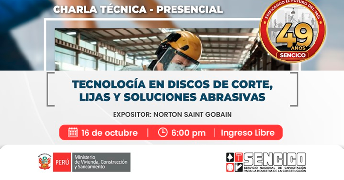Charla presencial gratuito "Tecnología en discos de corte, lijas y soluciones abrasivas" del Sencico