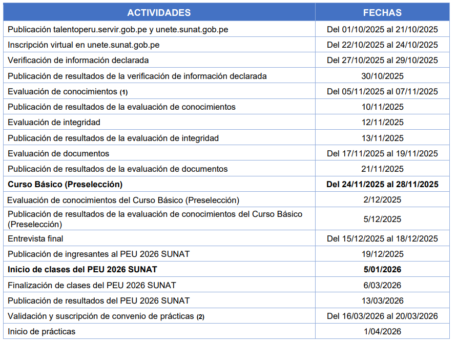 Las inscripciones para el Programa de Extensión Universitaria de la SUNAT serán (Del 22 de octubre al 24 de octubre)
