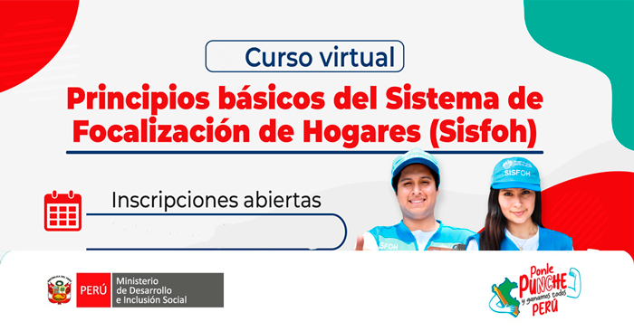 El Ministerio de Desarrollo e Inclusión Social (Midis) dictará el curso virtual básico denominado “Principios Básicos del Sistema de Focalización de Hogares (Sisfoh)”, ...